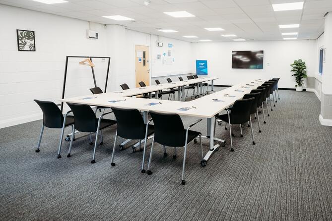 Our bright and versatile conference room is designed to adapt to your event needs, whether you’re hosting a workshop, training session, or team meeting. Capacity: Up to 30 people in horseshoe layout or 50 people theatre style (no tables) Flexible Setups: Tables and chairs can be easily rearranged for classroom, cabaret, or horseshoe layouts Facilities: Includes a large TV screen for presentations, plus free Wi-Fi and air conditioning for comfort Extras: Flipchart, paper, and pens available at an additional cost Catering: Refreshments and catering can be arranged on request